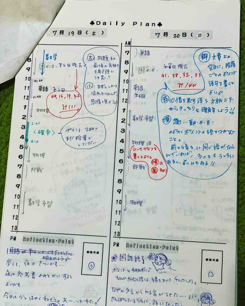 ②当日、実際にやってみたスケジュールを色ペンで書く。