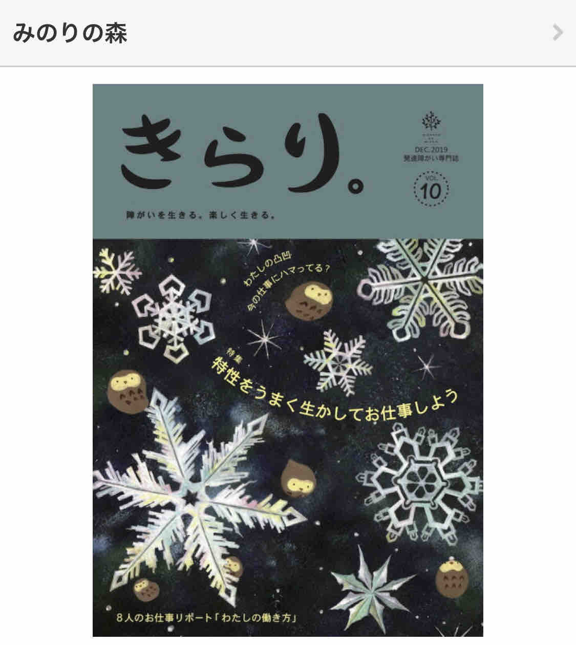 2019年12月03日 最新号きらり。vol.10 予約開始! 12月5日発売!発達障害専門誌きらり。vol.10「特性を生かして働く」特集号ネット販売の準備ができました。Kindleも近日中に公開します。ご注文をお待ちしています!Amazonhttps://www.amazon.co.jp/gp/product/B0828B7V35楽天https://item.rakuten.co.jp/minorinomori/00010/BASEみのりの森https://minorinomori.thebase.in/★2020年度定期購読プラン(年3回)お申し込みはこちらから!https://minorinomori.thebase.in/items/25072354★クラウドファンディング挑戦中!!!現在56%です。まだまだご支援が必要です。未達成の場合、とことこサイトは制作できなくなります。どうか、よろしくお願いいたします。https://readyfor.jp/projects/kirari01 「お知らせ」カテゴリの最新記事 タグ :#きらり#発達障がい専門誌#発達障害#ASD#ADHD#LD#特性を生かした暮らし方#特性を生かして働く